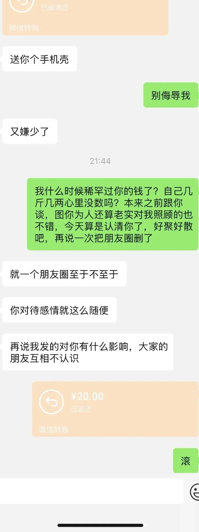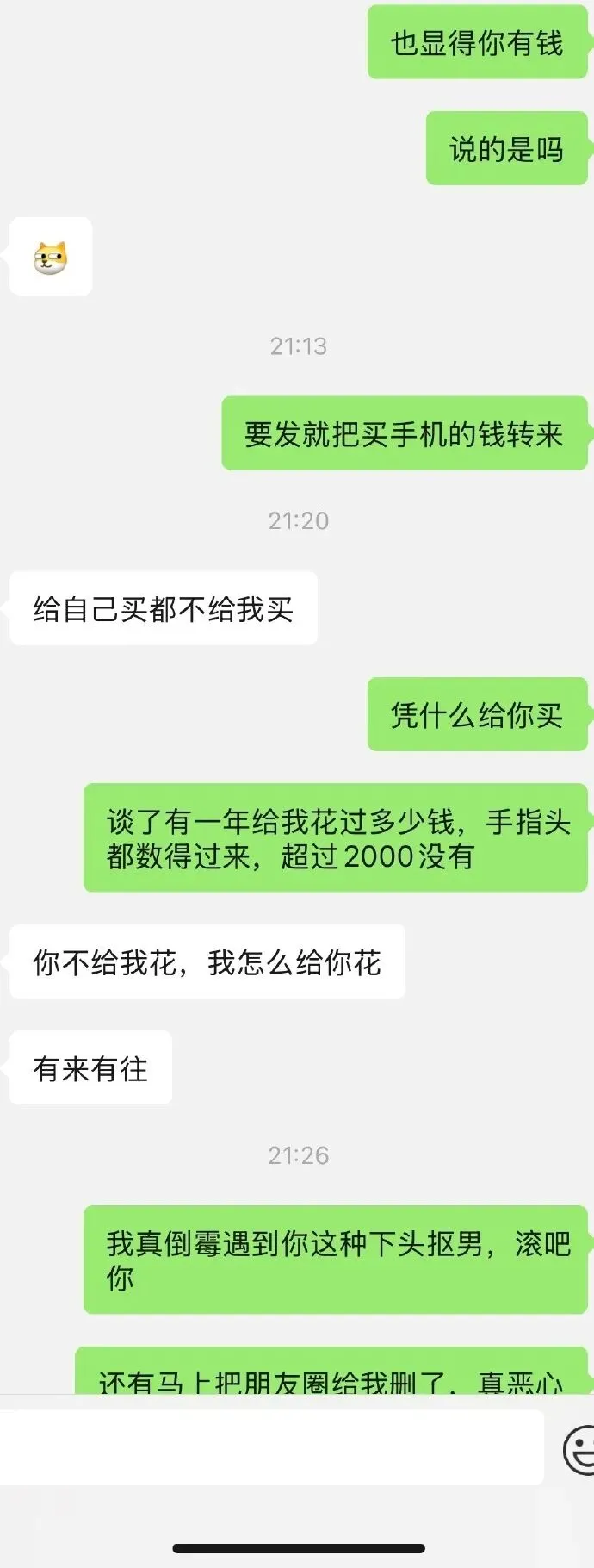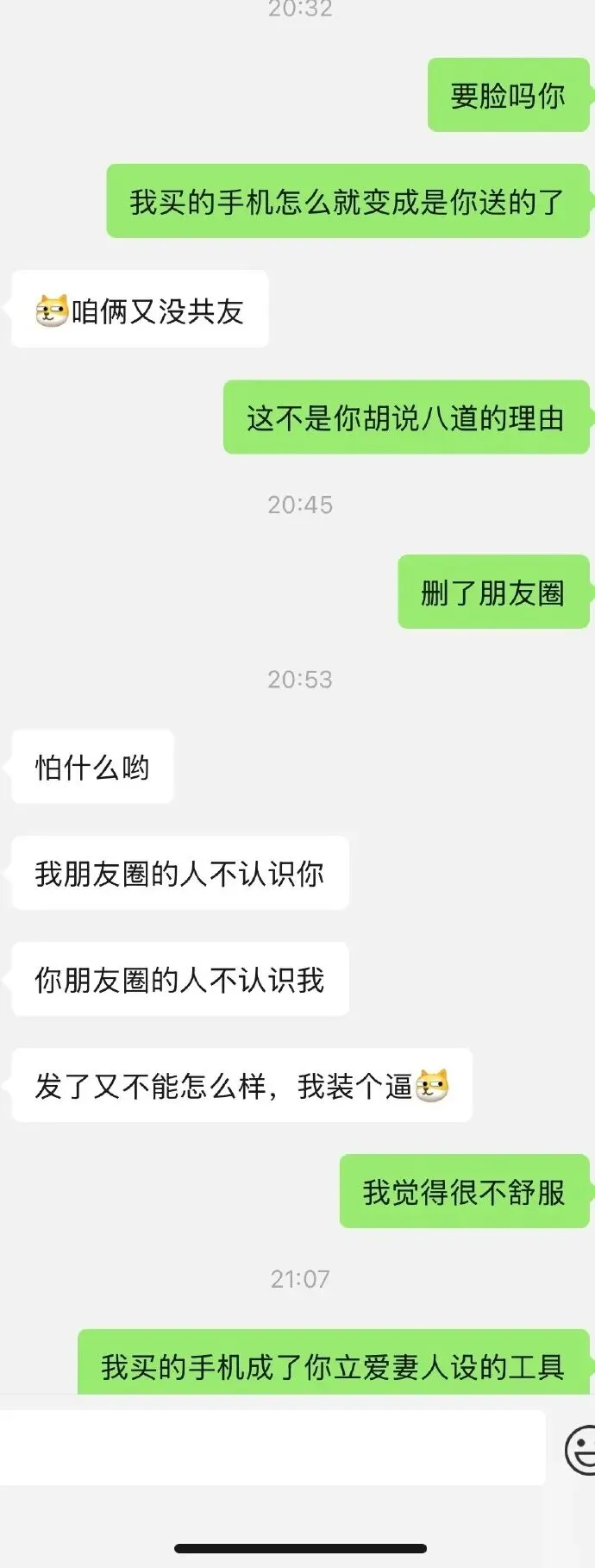 这部手机他没出过一点钱,他发了个朋友圈,说是偷偷给我准备了一个惊喜,图片是我买的手机,我觉得他好虚伪,他觉得我们又没有共同好友,他只是想在朋友面前装一下,大家觉得这样的人下头吗?还是我太敏感了。