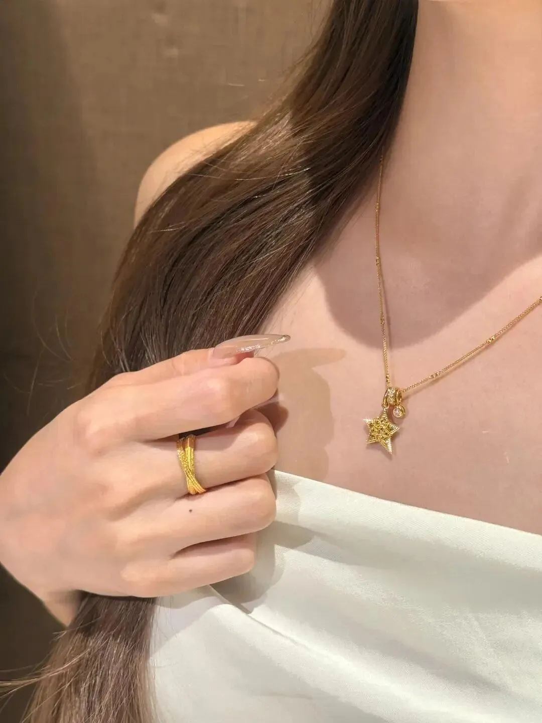 说实话我以前一直以为买金首饰这事挺简单直接总是觉得只要看准成色克重就完事了结果这回翻车了回家一看账单竟然比我预算多了小一笔比我上个月健身年卡还贵得有点突然想想有点好笑本来我就不爱戴复杂款只图个安全省事这次就是看到那个星星挂坠被她一句好喜欢给推下了水