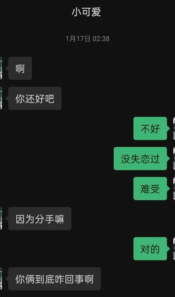 当我分手的当天,情绪开始意识到,我分手这件事情的的那一夜,是亲爱的小可爱,凌晨2点多,一直在手机里陪着我,主要承担我精神崩塌的重建工作,如果不是有她的陪伴,那天晚上我一秒钟都睡不着,第二天身体可能就垮了,根本支撑不住回家。