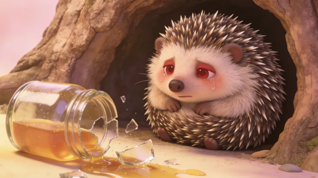 冬夜像一块柔软的黑丝绒,裹着整个松针森林。小刺猬点点缩在自己的树洞小屋裡,爪子还在微微发颤——他刚刚不小心碰倒了窗台上的蜂蜜罐,陶罐摔得粉碎,黏糊糊的蜂蜜溅满了地板,连挂在墙上的干草画都沾了好几滴。