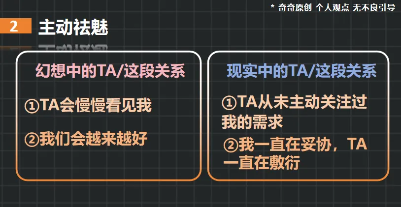 你可以拿一张纸,左边写下“我幻想中的他/这段关系”,右边写下“现实中的他/这段关系”——比如左边写“他会慢慢看见我”,右边写“他从未主动关注过我的需求”;左边写“我们会越来越好”,右边写“我一直在妥协,他一直在敷衍”。