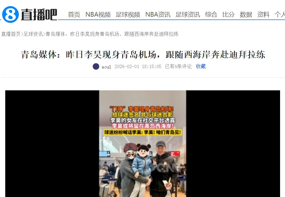 此外,青岛新闻网最新报道,1月31日,李昊现身青岛机场,跟随青岛西海岸奔赴阿联酋迪拜拉练,更加证实了新赛季留在球队,暂时不会前往欧洲留洋。