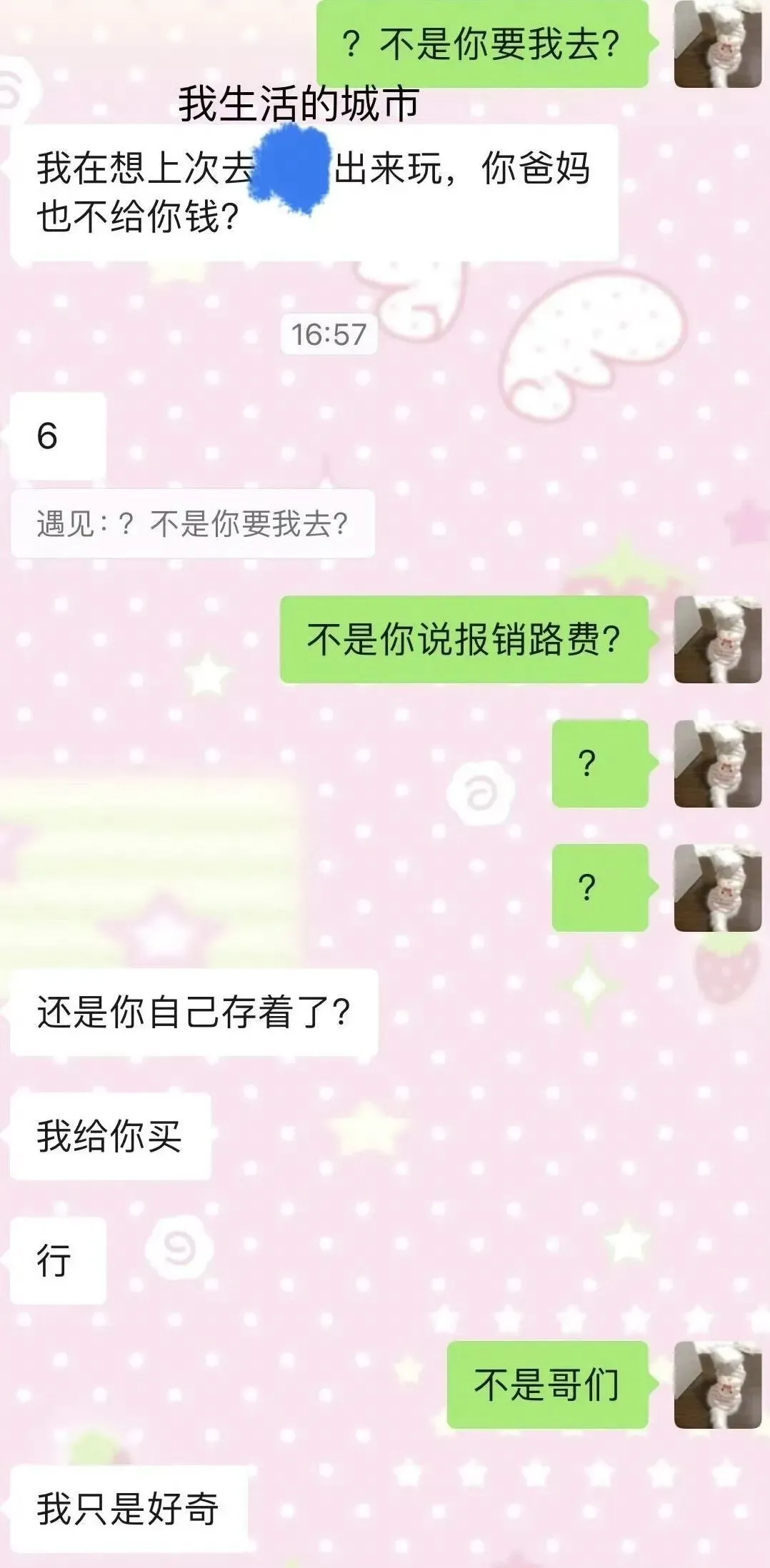 神金啊,大你那么多你去找他还计较这点路费,要么很穷要么很抠,对你态度也不好也没有情绪价值,这个恋爱你在谈什么,吃点好的吧。