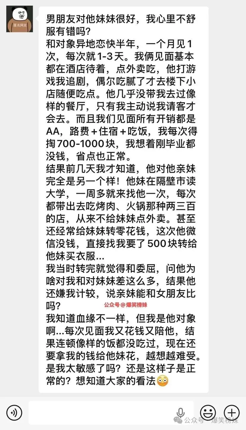 不是他对他妹妹好,你不舒服,是他对你不好,你不舒服,其实不论他对他妹妹怎样,他对你就是不好。