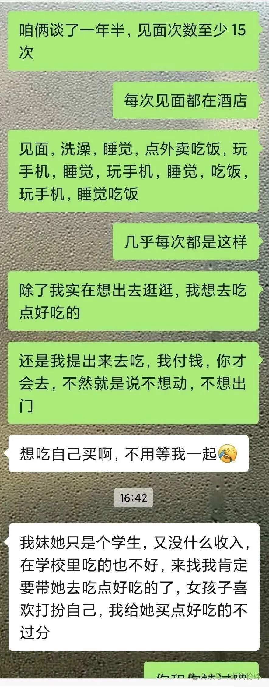 有点不像妹妹,感觉像女朋友,这人被三了。