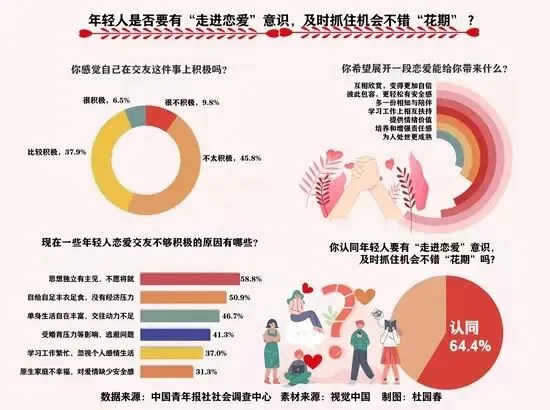 在以前,谈恋爱就像人生的一个必选项,到了年纪就得做。而如今,年轻人的恋爱观念发生改变,更重视自我感受,同时丰富多彩的生活也让他们改变现状的动力不足。