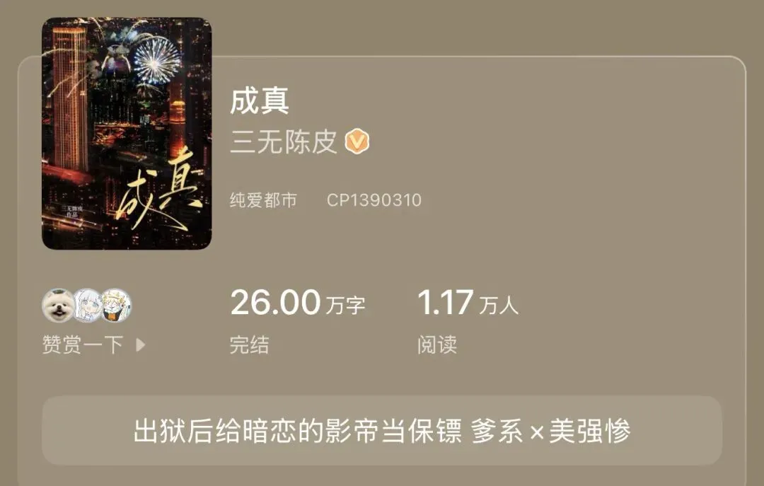 3️⃣《成真》by三无陈皮温柔爹系影帝攻×有点美强惨保镖受年上、酸甜、暗恋、娱乐圈、HE
