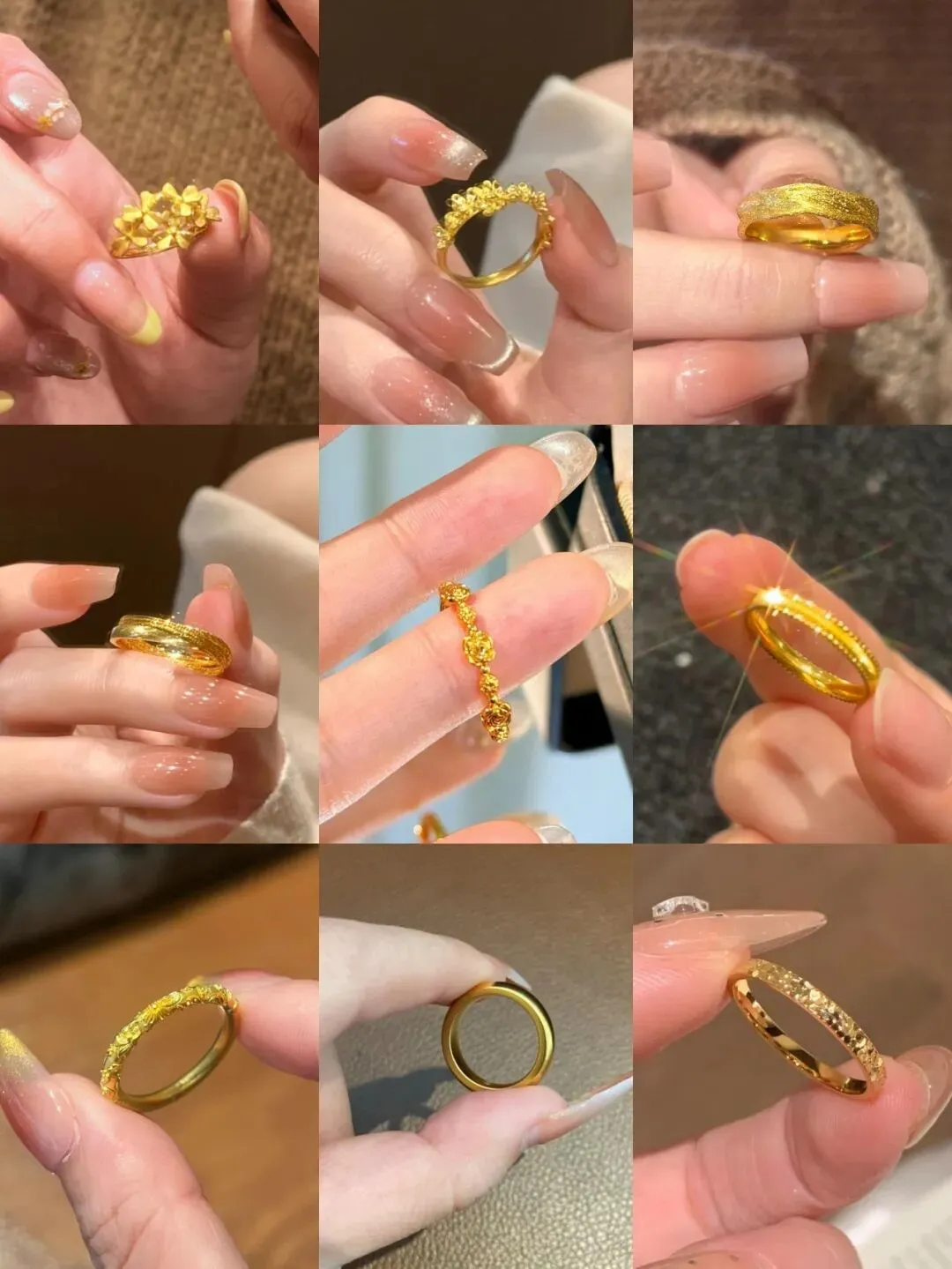 所以我现在更倾向于:挑那些日常戴得住的三五克分开买别一下子冲太大手指粗细有变化戒指戴着也能灵活点工艺嘛喜欢就好别一味追热门我身边有同事买了厚重的戒指结果天天搁盒子里当摆设(捂脸)