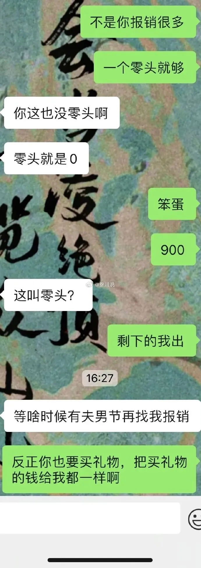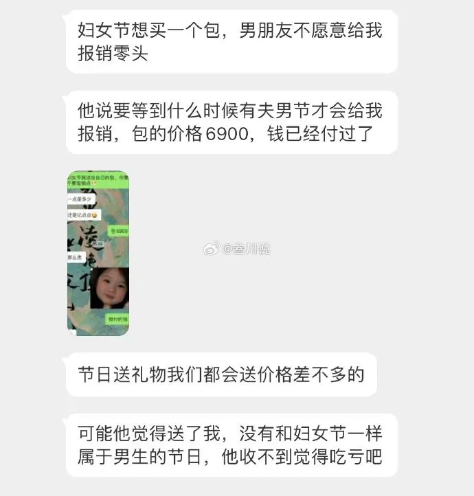 男朋友不愿意给她报销零头