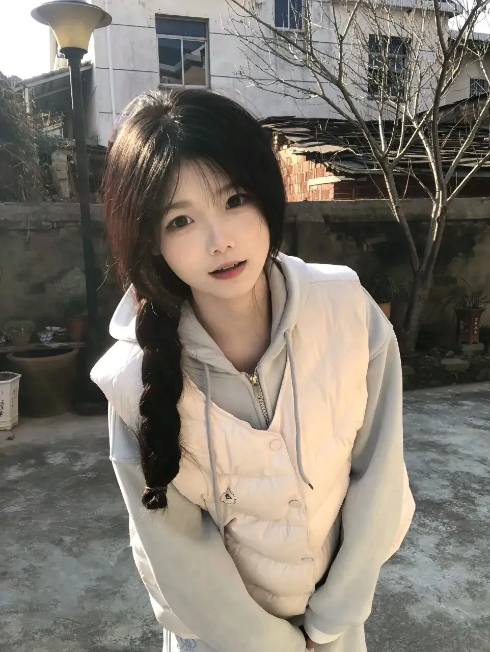安安静静站在老院子里,自带一股邻家气质,让人忍不住心生欢喜。