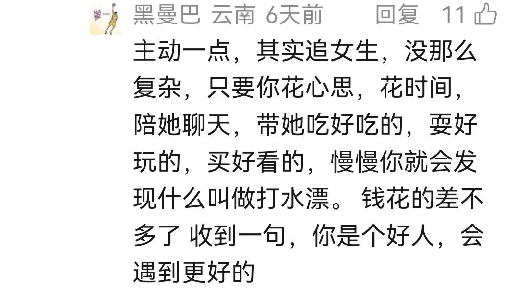 但这不是重点,重点是可能人家最后说:你是个好人,但我俩好像不合适,你会碰到更好的,于是这钱就打了水漂。
