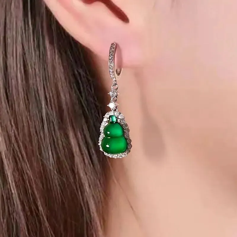 >杨幂同款耳饰正品翡翠绿宝葫芦送女朋友生日礼物绿色气质