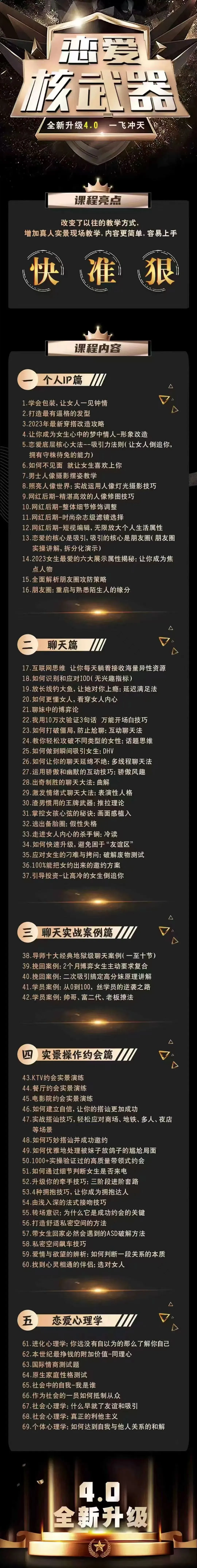 🎉 【情感上新】七分学堂·恋爱核武器4.0《一飞冲天》,完整版无水印,震撼发布,已更新最新。