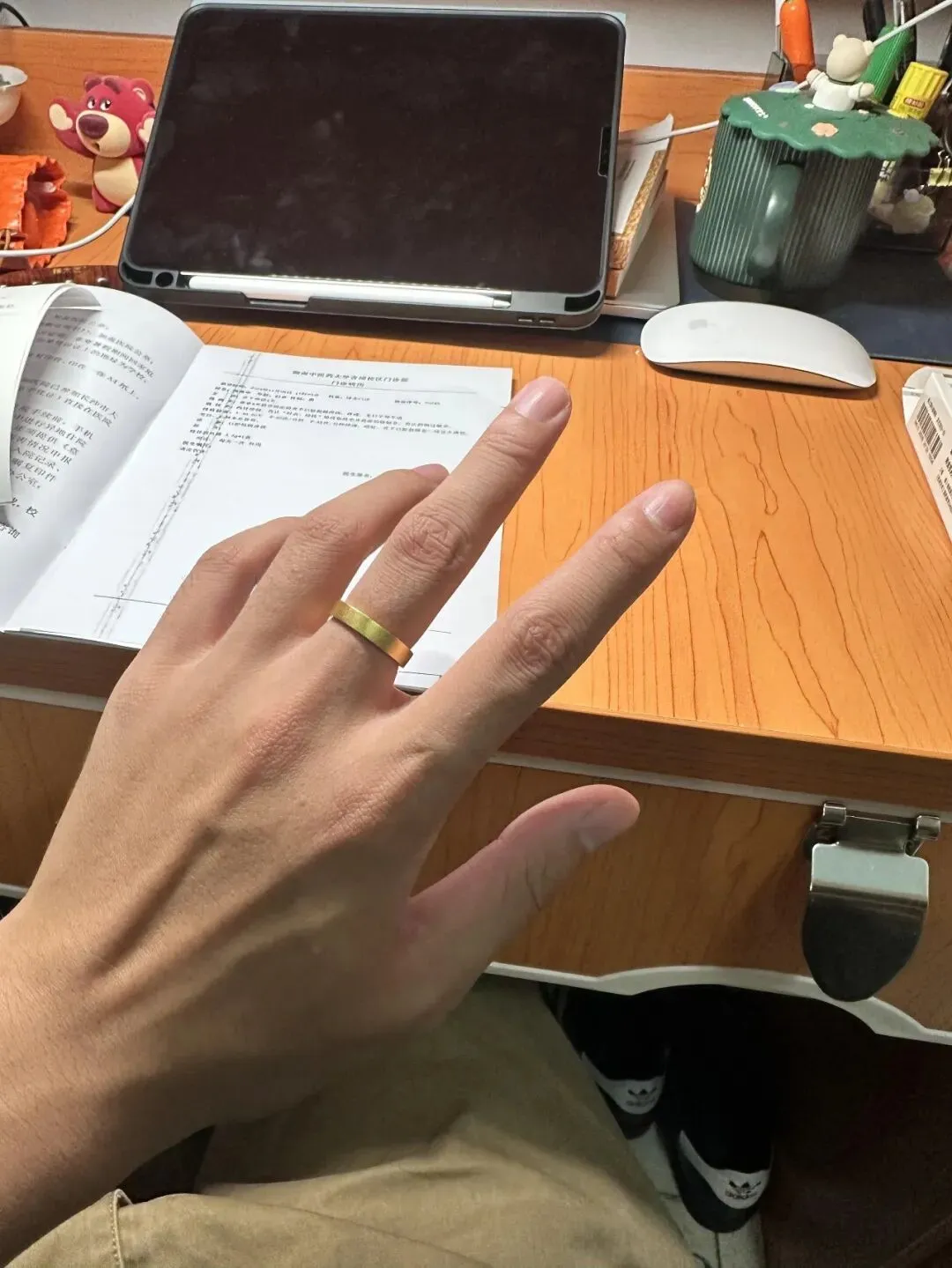 本来想周末拿去配合新买的羊绒衫试下搭配 结果工作一多发现全程都是在学习桌前打键盘 把手一抬金戒指正好卡在灯下反光 一瞬间还能看到我自己脸上的起床印 紧接着同事发消息问开会准备好了没 我突然发现 这枚金戒指其实比我平时那些电子产品 郊游门票之类 更容易成为日常存在的细节 就好像每天喝咖啡刷手机 收到快递拆开 包装褶皱一下就能轻易记住新鲜感哈~