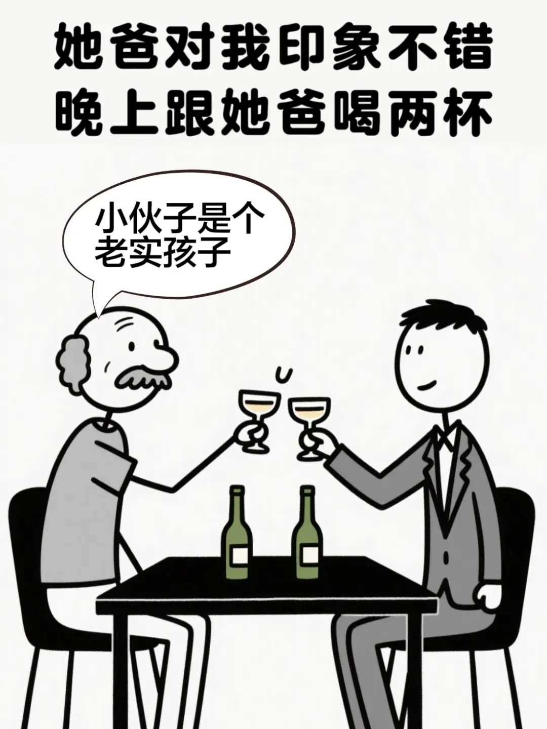 逗你开心:和女朋友她爸吃饭,她爸对我印象不错,她爸让我们以后好好的,我说肯定会照顾好你女儿的.她爸说:我是说你以后要好好保护自己