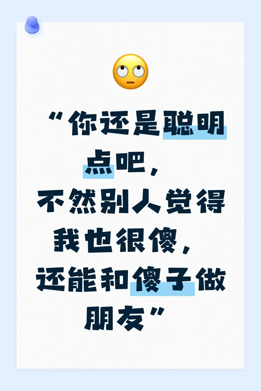 “你还是聪明点吧,不然别人觉得我也很傻,还能和傻子做朋友”