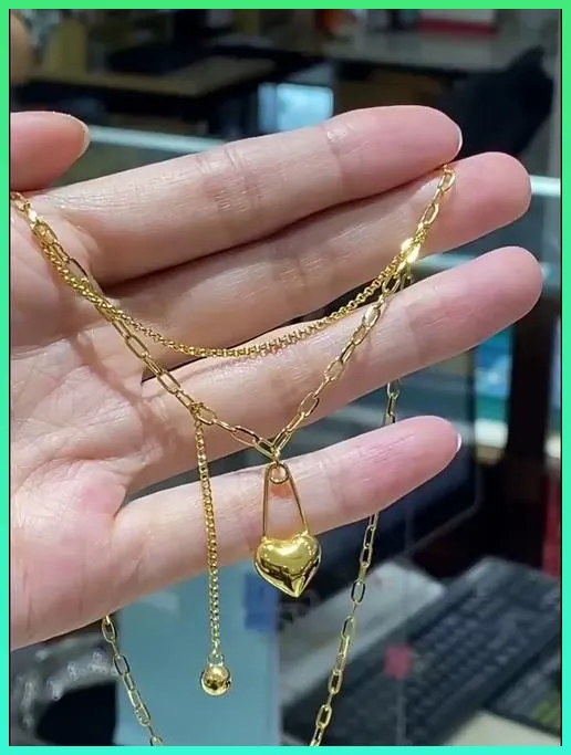 女孩直奔那个柜台,指着那款最近网上很火的心形锁骨链,小声说:“我想看看这个。”