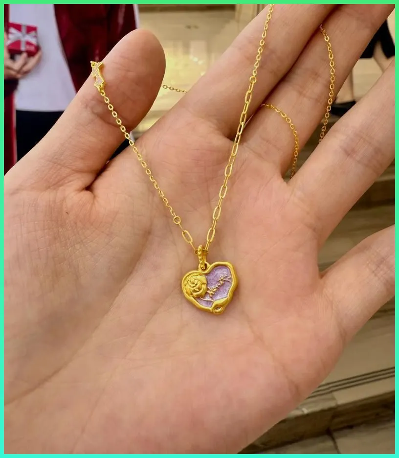 我把项链拿出来,轻轻放在绒布托盘上。那是个很小的坠子,做工挺巧,中间镂空,两边是磨砂质感。克重不大,加上工费也就两千出头。