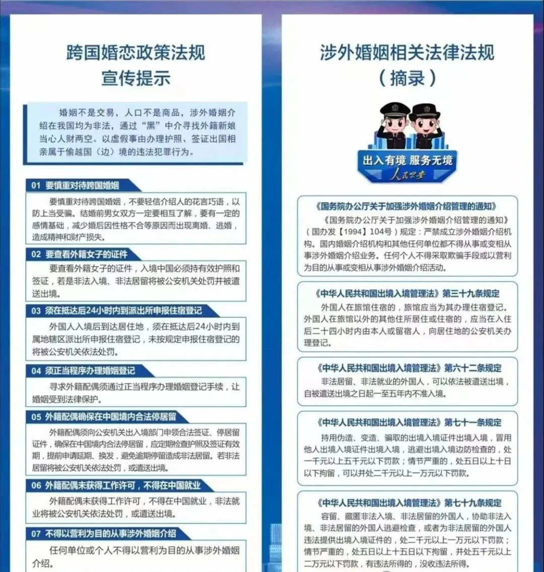 二、要慎重对待跨国婚姻,不要轻信介绍人的花言巧语,以防上当受骗。