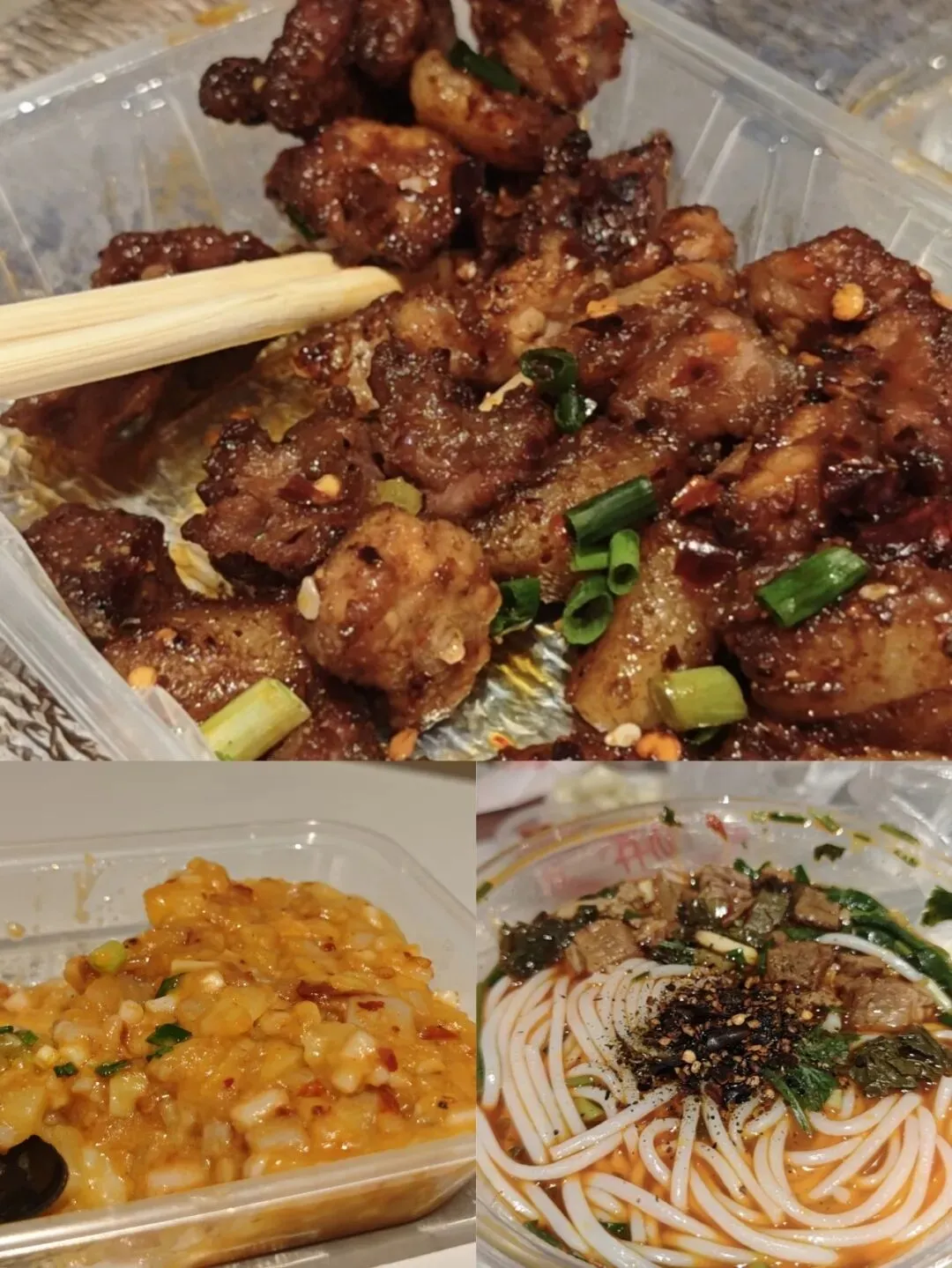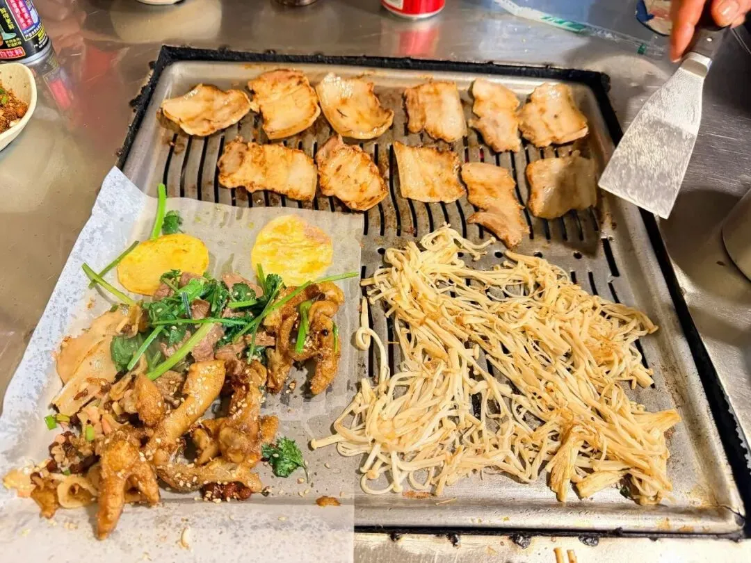 旅行当然要在酒店点外卖啦!我觉得贵州的外卖,大部分都不会踩雷,因为预制菜很少。这个烤肉很推荐,很美味,炒洋芋和粉就是正常水平。