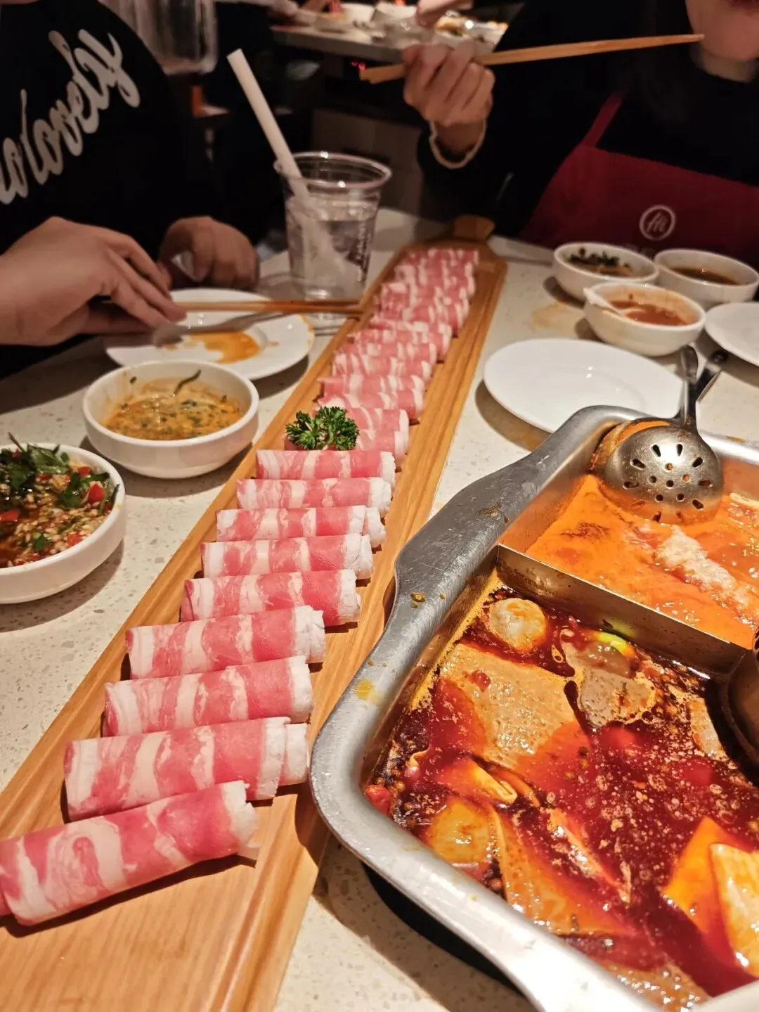 晚上去r哥w姐家里玩了,锅子来之前也和他们连麦打过游戏,很快速就融入了大家,男生在电竞房打游戏,我们女生在外面餐桌聊天,晚上一时兴起,还去吃了一顿海底捞。