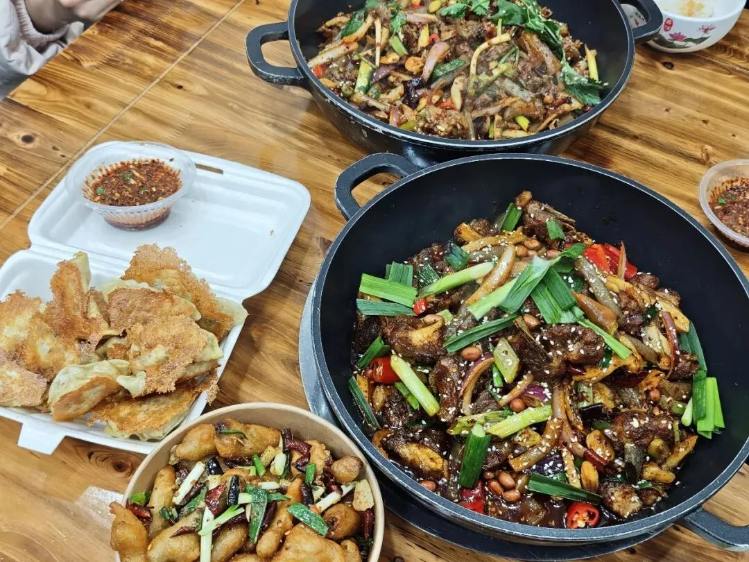 晚饭大家请我们吃了干锅牛肉和排骨,