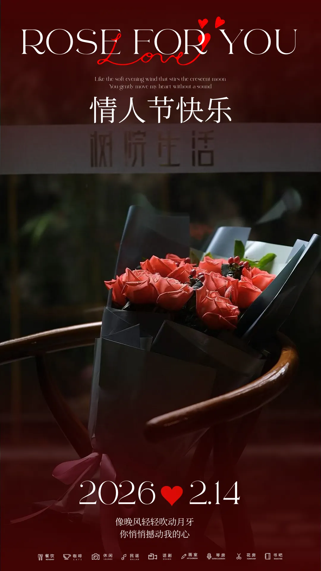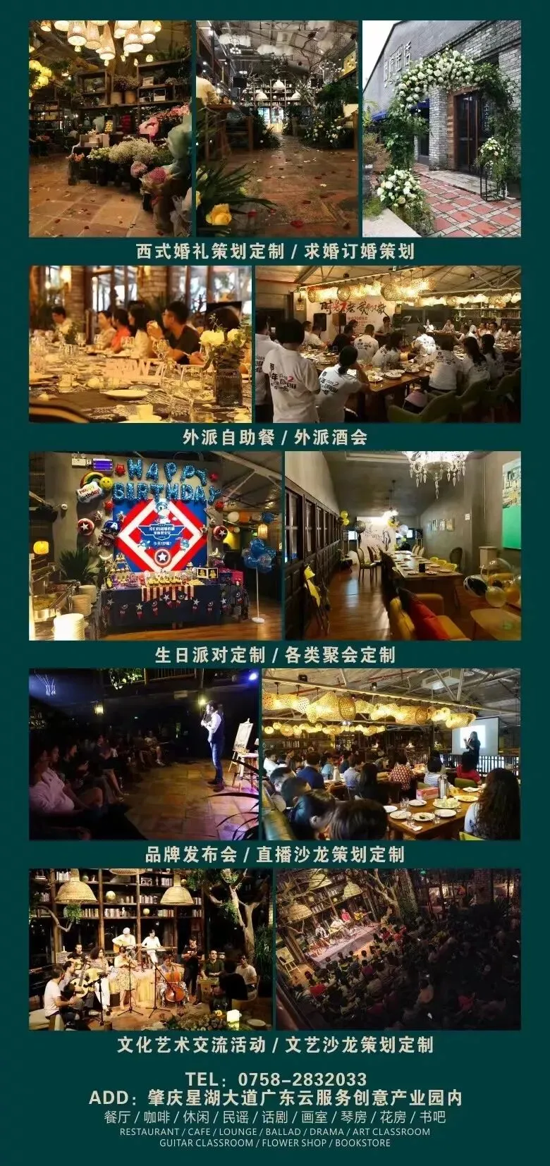 餐厅 / 咖啡 / 休闲 / 民谣 / 话剧 / 画室 / 琴房 / 花房 / 书吧