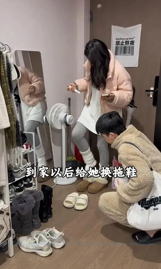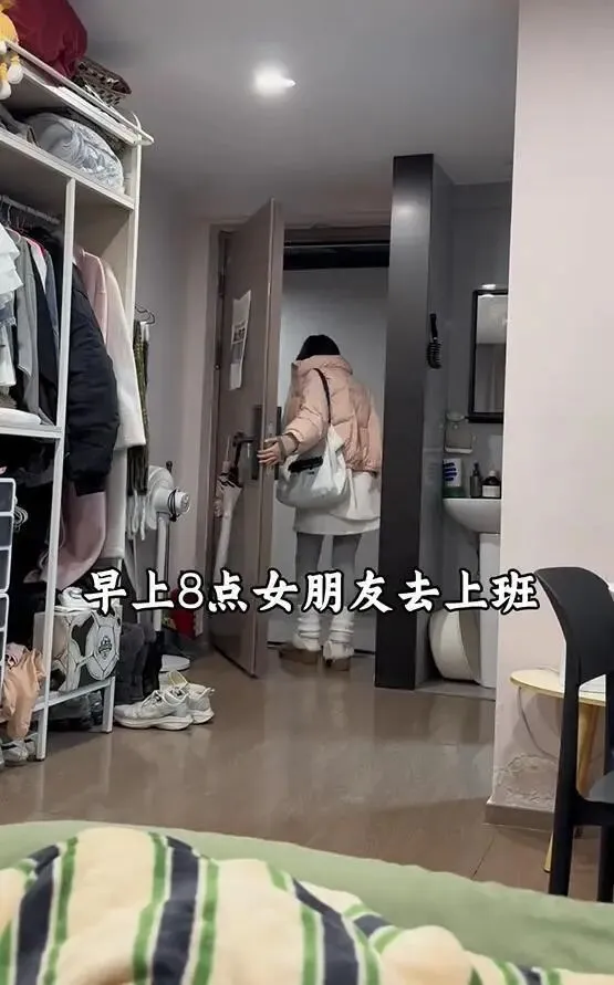傍晚6点半,他准时下楼接女友,主动接过对方的包,牵手回家,换好拖鞋后陪女友吃饭追剧,晚上10点伺候女友洗漱睡觉,一天便算“工作”结束。