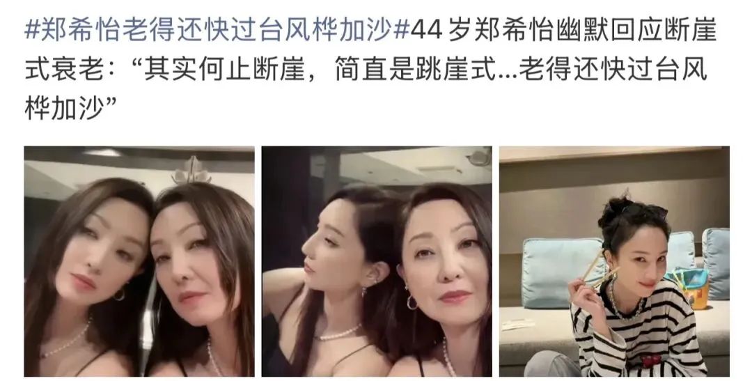 她直接配文自黑:“其实何止断崖,简直是跳崖式…老得还快过台风桦加沙。”