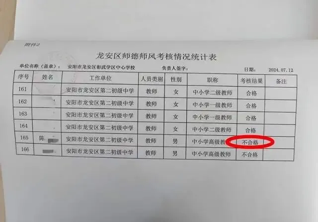 2025年底,学校开展专业技术岗位等级晋升竞聘工作,他在调取资料时,发现2024年他的师德师风考核被定为不合格。
