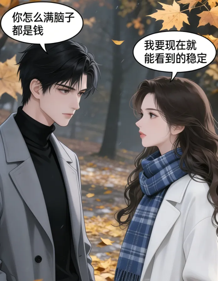 江熠的脸瞬间沉了下来。“又是这些?” 他把咖啡杯重重放在桌上,“苏晴,我以为我们的爱情能纯粹点,你怎么满脑子都是钱?”“钱不是万能的,但没它真不行。” 苏晴的声音有点发颤,“我不是要你现在就大富大贵,可连基本的生活保障都看不到,我怎么敢赌一辈子?”“所以你爱的是我的钱,不是我这个人?” 江熠的话像针,扎得人疼。邻桌的目光投过来,带着探究。苏晴攥紧了手心,没退后半步:“我爱的是你,但我也不能忽略现实。”江熠猛地起身:“那你找个有钱的好了,我给不了你想要的物质。”推门而出的瞬间,风铃叮当作响,苏晴的眼泪终于忍不住掉了下来。