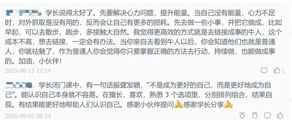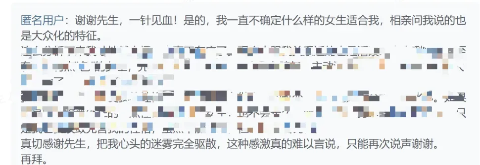 当然你要是暂时没有具体的问题也无妨,可以围观他人的人生困惑,提前学习预防(社群内目前已经积累约300余个典型咨询案例,涵盖职场、学业、人际、婚恋、家庭、创业等事关大家人生选择的重要问题。)
