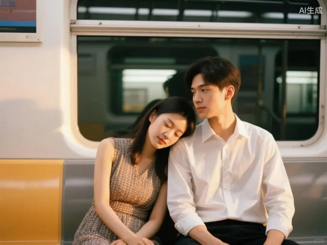 返程路上,我和梅子一起坐地铁,车厢里人很少,两边空着不少座位。