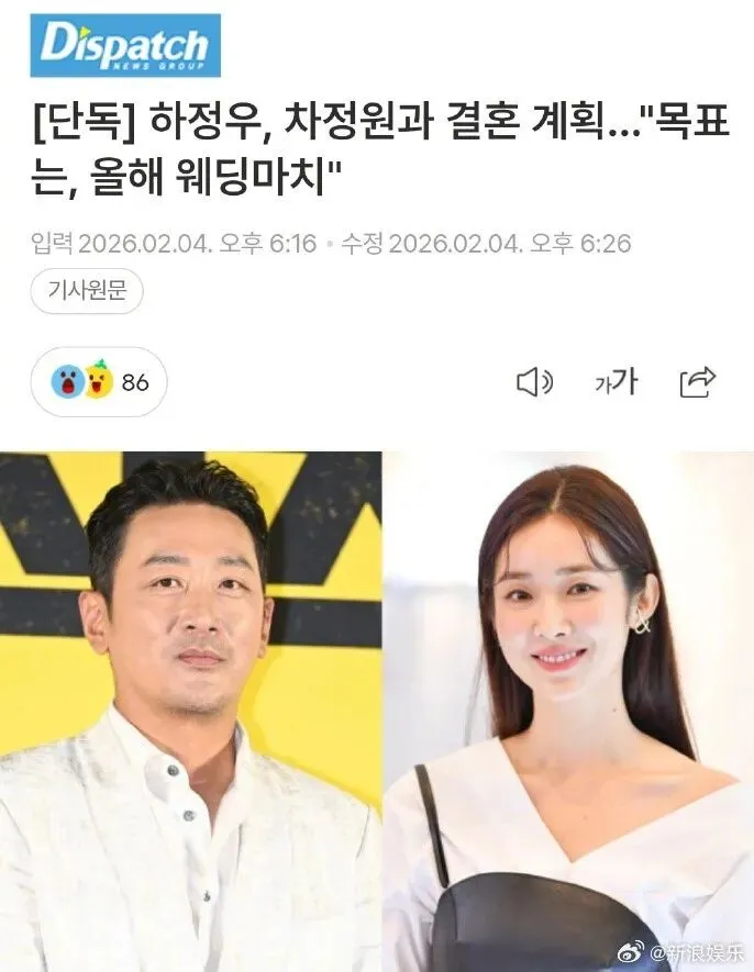 2月4日,河正宇与女演员车贞媛通过各自经纪公司同步发表声明,正式确认了恋爱关系。声明写得颇为“教科书”:两人于2020年因工作相识,从同事自然发展为恋人,目前已低调交往约六年。然而,声明紧接着就给了公众期待一盆冷水——明确否认了所有关于“计划结婚”的传闻,强调“婚期尚未确定”,并恳请外界不要过度揣测。河正宇方更是搬出了“需专注新电影拍摄”的理由,将结婚计划暂时搁置。