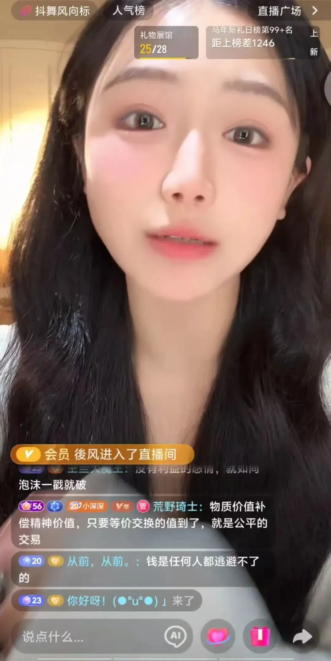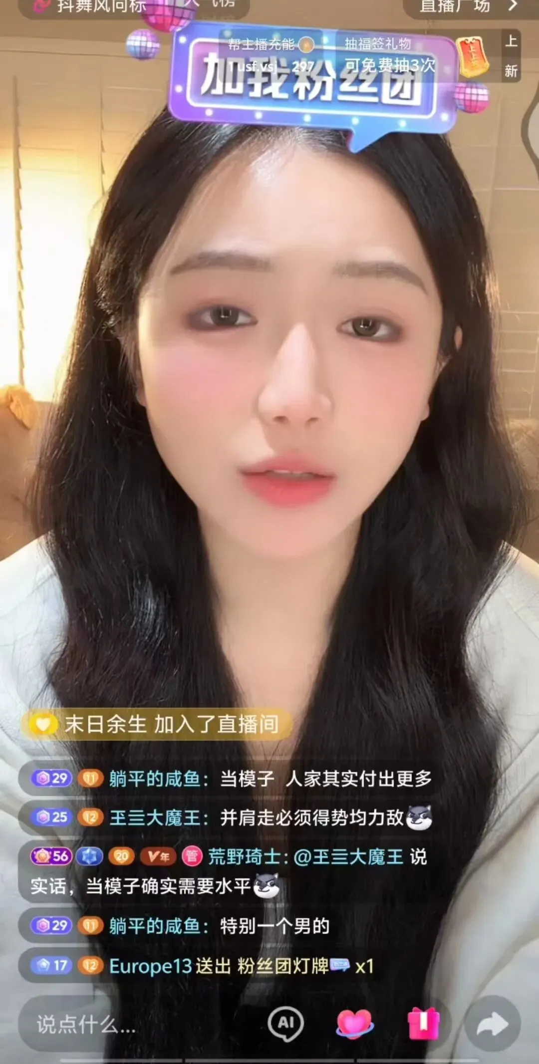 弹幕:你怎么这么懂模子?粉丝:深子姐现在是考虑门当户对了。小深深:对的,以前我觉得生活条件也没那么重要,只要俩人能处的来就没太大关系,哎呀,其实不是这样的,如果俩人不能并肩走,就谈不到一块去!