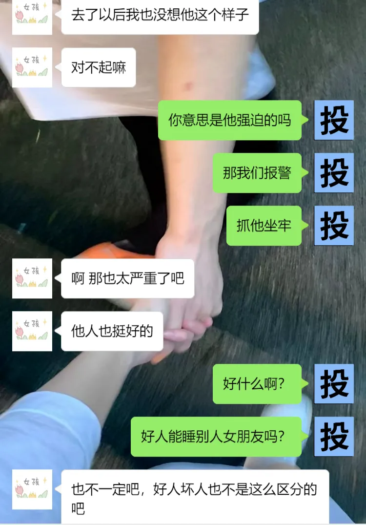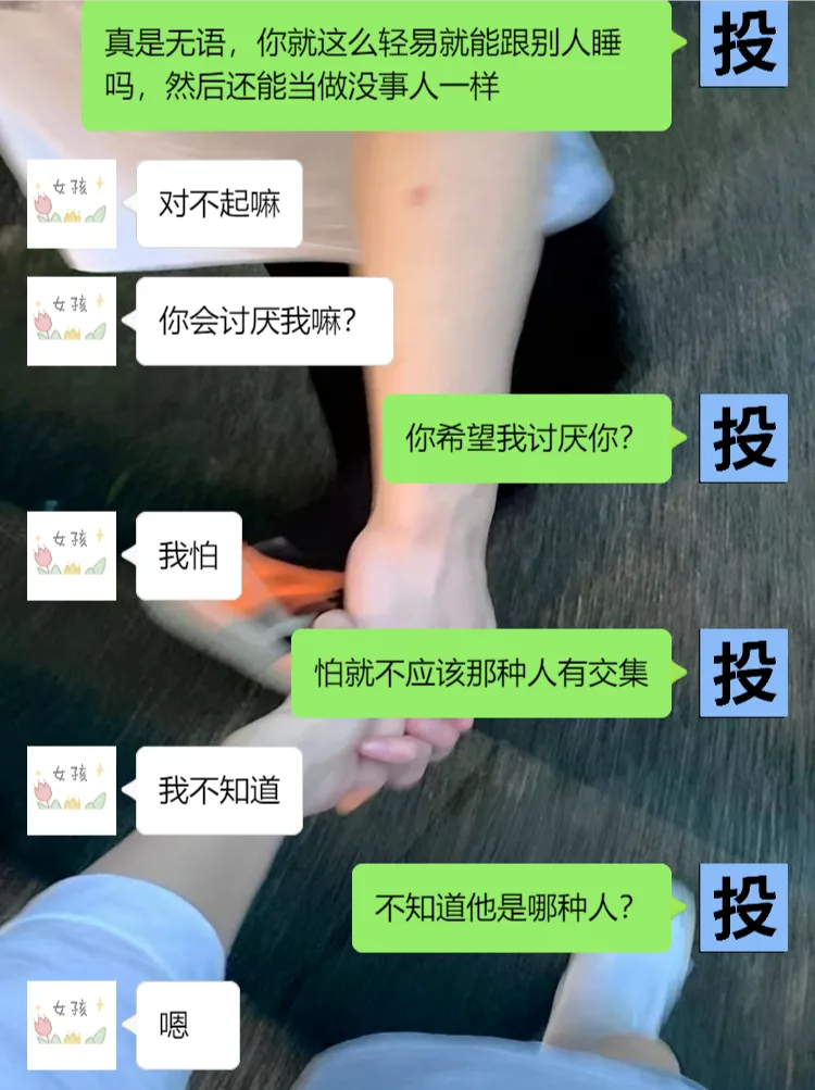 我一开始听她委屈巴巴以为她是被前任卖了的那种小剧情,后面打听了解到是她不拒绝人家!人家加她她就加,人家发晚安她也回晚安,人家叫她妹妹她就叫哥哥,人家摸她她就问“你干嘛呀”,人家脱裤子她就捂着脸“不要不要”,关键睡完事后还和人家能继续成为好朋友相处