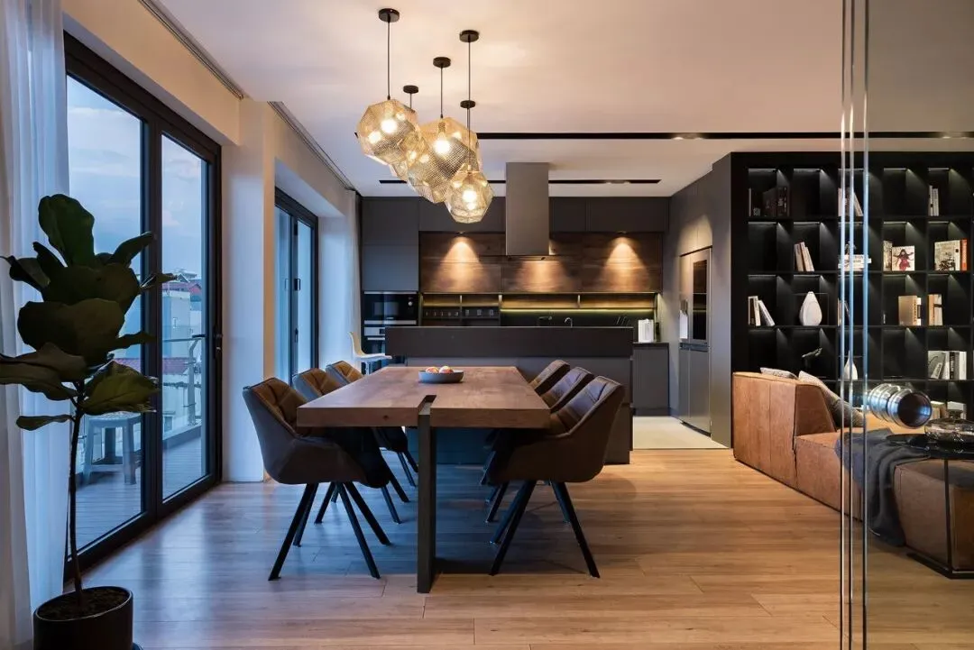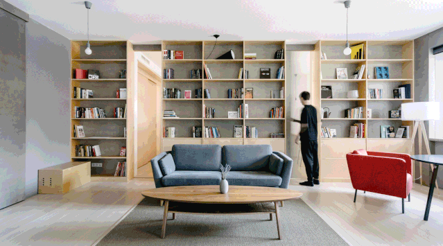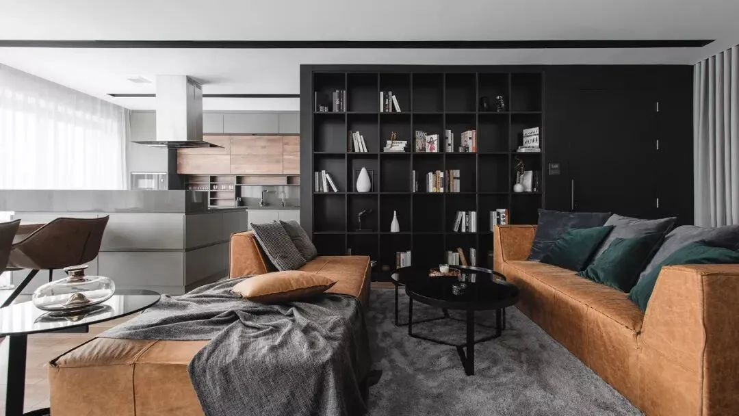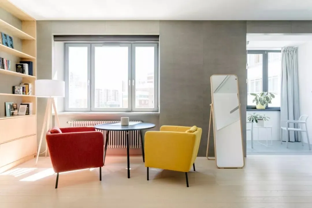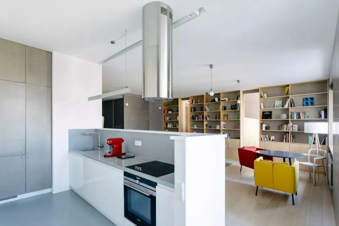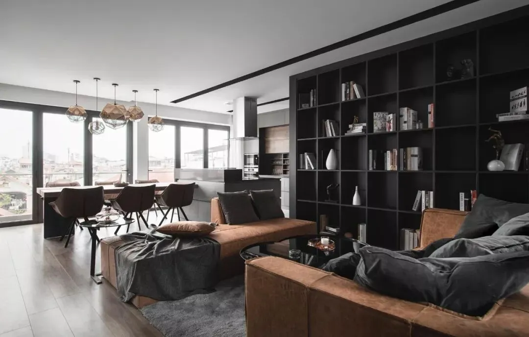 由MOCCA Architects设计的这套公寓位于越南,面积为140㎡,大面积黑色与棕色的运用,整体现代又不失古典的优雅。客厅、餐厨空间呈开放式设计,电视背景墙由水泥板和黑色大理石拼接而成,简约而有设计感。两张棕色的皮质沙发相对摆放,下方铺设的灰色绒面地毯与靠枕相互呼应,配上纯黑的茶几十分搭调,书架背景墙提供了大量的储物空间。客厅一旁便是餐桌椅,长方形的木制餐桌可容纳 6 人。上方的组和式吊灯高低错落,为原本单调的空间带来梦幻的感觉。厨房以灰色为主,利落的线条现代感十足,橱柜上方安装的顶棚灯美观又实用。儿童房应该是公寓内最清新的房间了,灰色和粉色的家具充满童心,兔子座椅和云朵形状的家居配件简直萌翻。这个公寓位于俄罗斯的首都莫斯科,是一对年轻夫妇的家,由CXE MA设计,面积为82㎡。从玄关进入室内是一个灰、白色区域,这样的配色能增加空间的纵深感。厨房旁边是全封闭的阳台采光非常好,白色的靠椅,边桌,将整个区域布置的十分悠闲、惬意。织物不仅具有功能性,能为空间增添色彩和纹理,设计师可以运用织物作为重点设计元素。