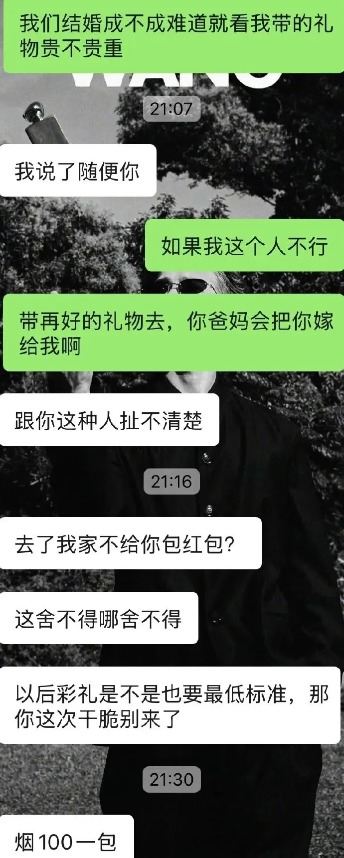 下班我就开心:不想娶你女朋友直说 第一次上门拿破烂糊弄谁我担女舞一:你真的太抠了吧你是罗厂花啊:男的骨子里的自卑反复强调农村农村旁观者都听烦了看到公主就拳头硬:你为啥还拿你朋友的对象出来说事 三十多万的存款我还以为只有30存款呢还有农村也没这么抠 我们不订婚上门都随便花两三千 又土又抠害自挂东南枝轻薄的荔枝:第一次怎么也要留个好印象吧予之以渔:不是,不抽烟不喝酒还要买烟酒的意义是什么?我爸也不抽烟不喝酒,我直接挑了两件一千出头的羽绒服让他买