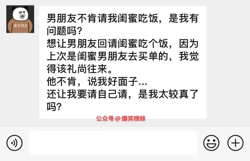 男朋友不肯请我闺蜜吃饭