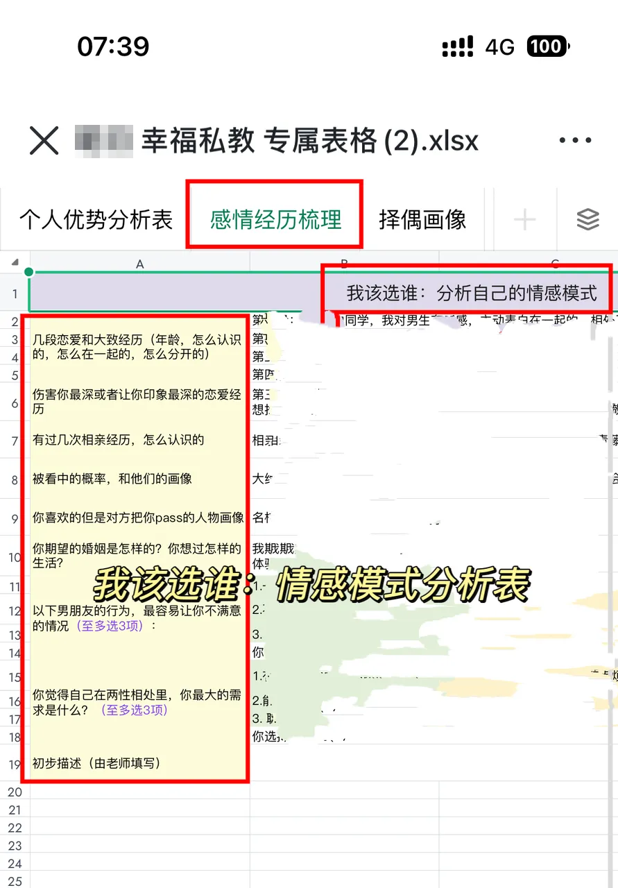 在提供的【4个分析择偶需求】表格中,我认真思考筛选,最终确定了自己的精准择偶定位,迈出了全新的一步。