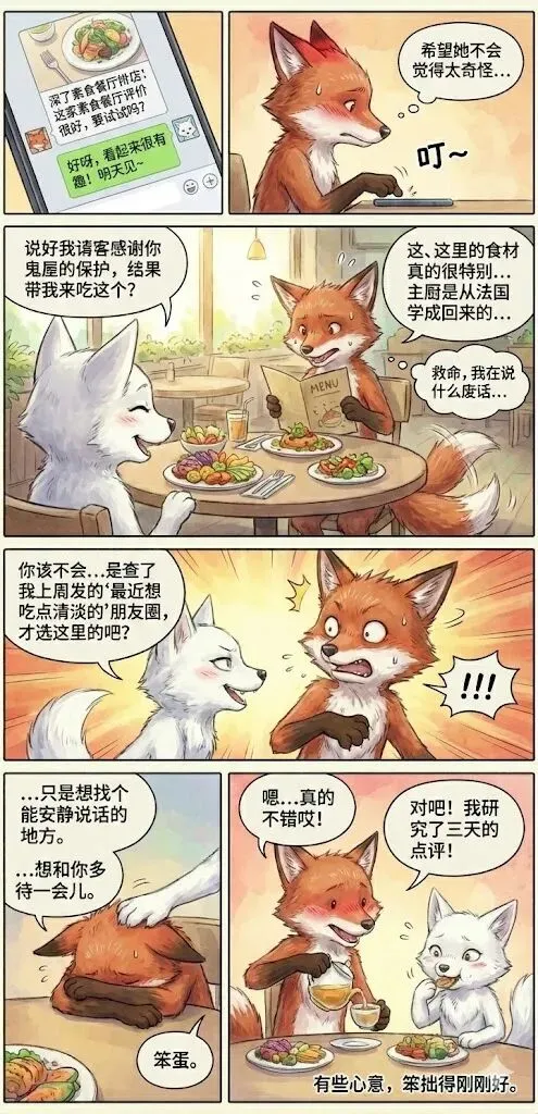 鬼屋玩后你说要请我吃饭,其实是你来迟的惩罚,你也没想到我会带你去吃素食,时候还说我好奇怪带人第一次吃素食