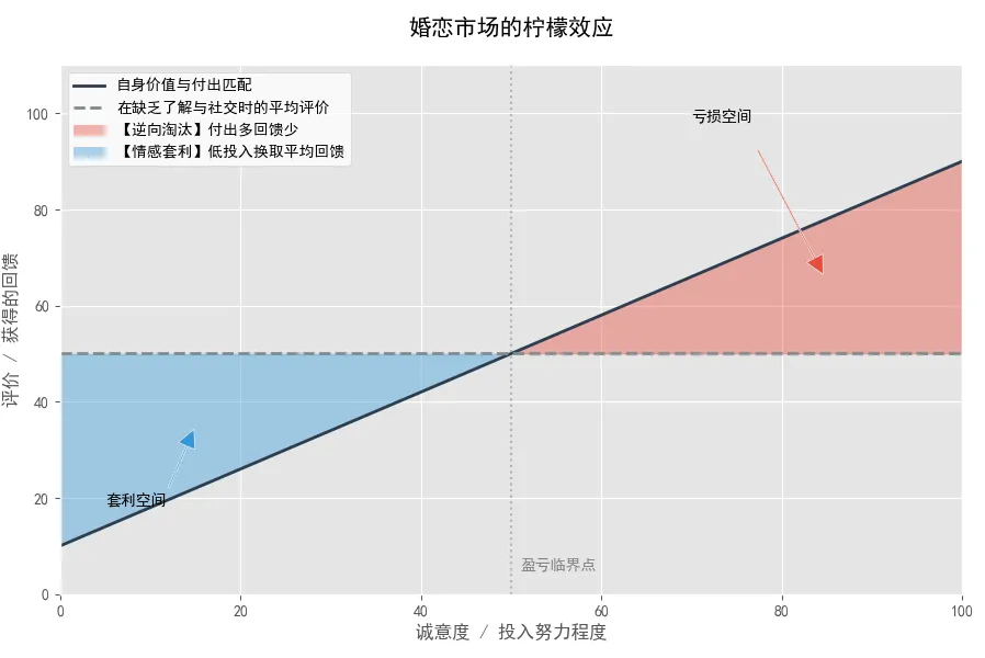 婚恋市场同样是一个信息不透明的市场,如果诚实、稳重的人与善于伪装、短期博弈的海王在初始阶段看起来一样,甚至后者更具吸引力,那么“好人”往往因为不擅包装而在竞争中受挫,最终选择退出市场(不婚或随缘),导致市场上剩下的低质博弈者比例升高。