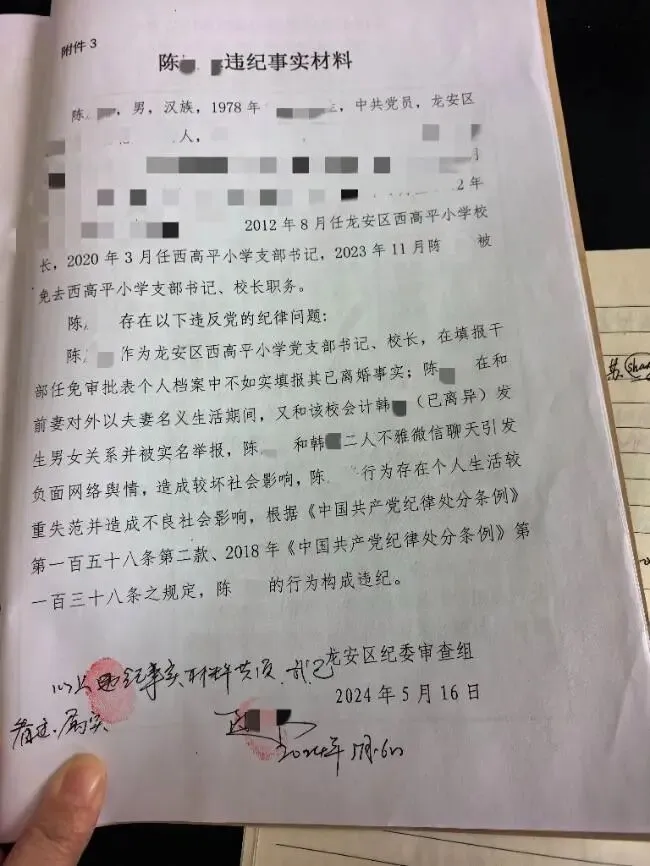 陈先生说,经过再一次调整,他被调至另一所小学。2025年底,学校开展专业技术岗位等级晋升竞聘工作,他在调取资料时,发现2024年他的师德师风考核被定为不合格。他找到龙安区彰武学区中心学校,校方答复称,是区教育局所定。随后,他又找到区教育局,得到的答复是与他和韩某相恋一事有关。