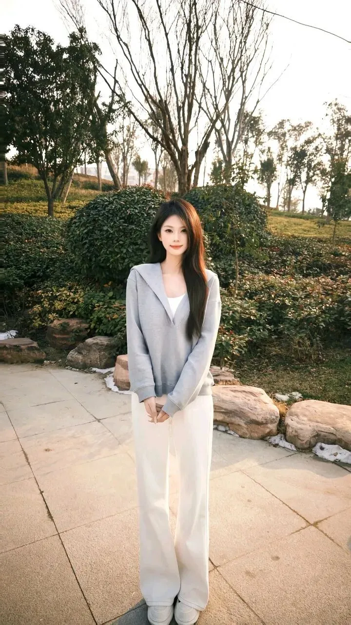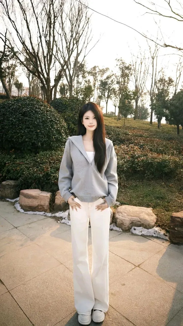 宝子们,有没有过这样的瞬间:看到一个人的样子,就想起傍晚散步时并肩走的松弛女友。眼前这个女孩就是这样,灰卫衣+白阔腿裤,把清甜又自在的气质展现得恰到好处。