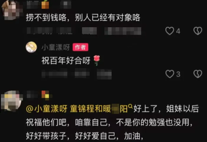 近日,在抖Y平台又爆出一组童锦程&正牌女友在夜店游玩的视频内容,从视频内容中显示,童锦程与某女子一同出现在夜店,并且各种行为举止非常亲密暧昧。关于上述正牌女友的身份,很快就被网友扒出,疑似是跟童锦程先前一同户外直播的美女嘉宾暖*阳,为了证明该网友所说皆为属实,该网友扒出童锦程&暖*阳的同款耳饰、同款帽子以及一同出行在外面游玩的照片!值得一提的是,网友纷纷晒出童锦程&暖*阳一同爬山的照片,并且发文感慨道:童锦程一路经历过这么多美女嘉宾,经历过如此多情情爱爱的童锦程,会跟如今这位正牌女友是最后一章嘛?两人是否会步入婚姻的殿堂!翻出之前童锦程&暖*阳直播的画面照片,不少水友感慨道:这个才是真爱吗,暖*阳好啊。这是第一个和童锦程在一起的网红,患难见真情,你知道这是什么含金量?这女的比那个好看多了。官宣吧,真想看他们在一起。值得一提的是,随着童锦程正牌女友身份被曝光,不少网友跑到私生子母亲的抖Y评论区评价道:你已经捞不到钱了,别人已经有对象咯。其回应称:祝福百年好合呀。 还有的网友劝导其:好上了,姐妹以后祝福他们吧,以后还是得靠自己,不是你的勉强也没用,好好带孩子,好好爱自己,加油!