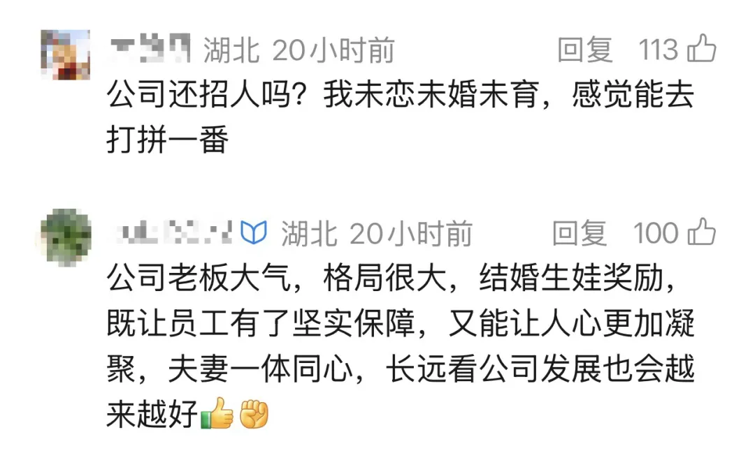 企业与员工不单单是存在生产的连接,还有情感的连接。通过“真金白银”的奖励和人性化制度,支持员工的婚恋、生育等,既减轻了员工的婚育负担,又提升了员工的归属感。这样充满人情味的企业更能吸引人,更能释放生产力。