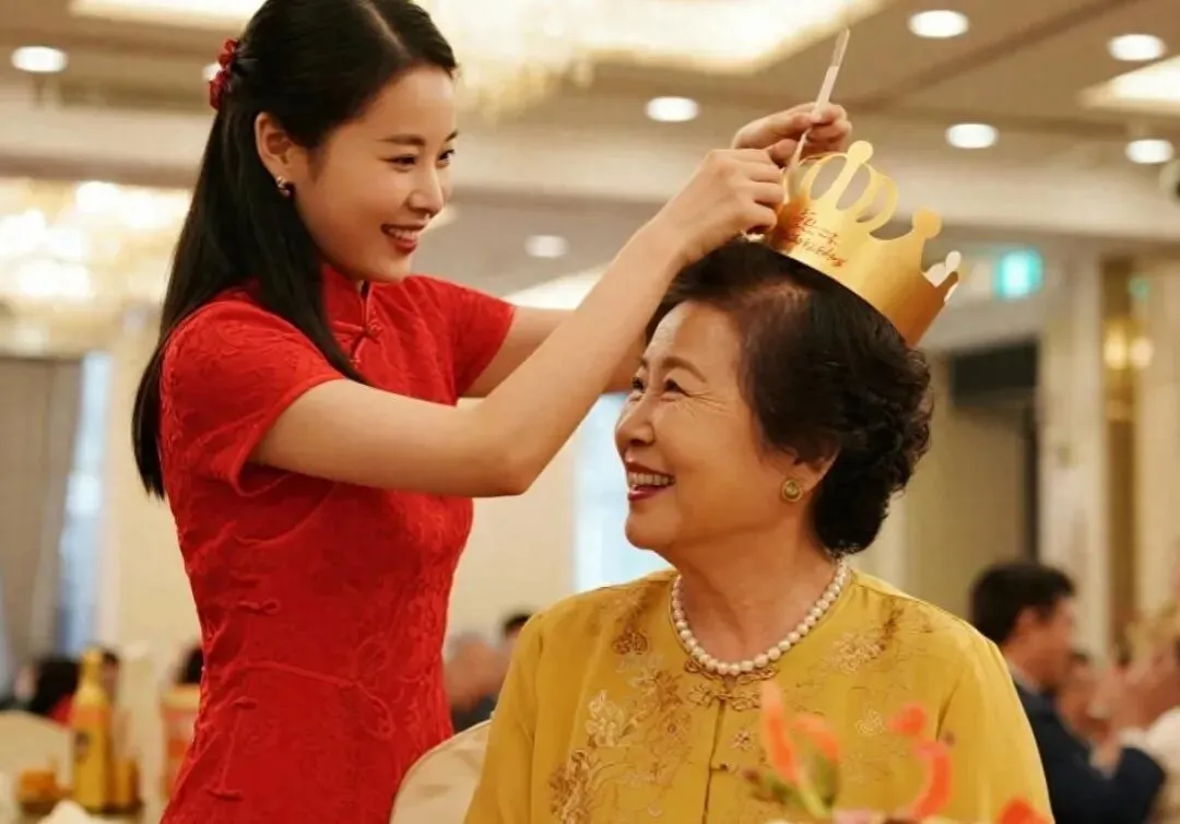 他母亲坐在主位,满头银发盘得一丝不苟,脸上堆着笑,眼角的皱纹都透着得意。