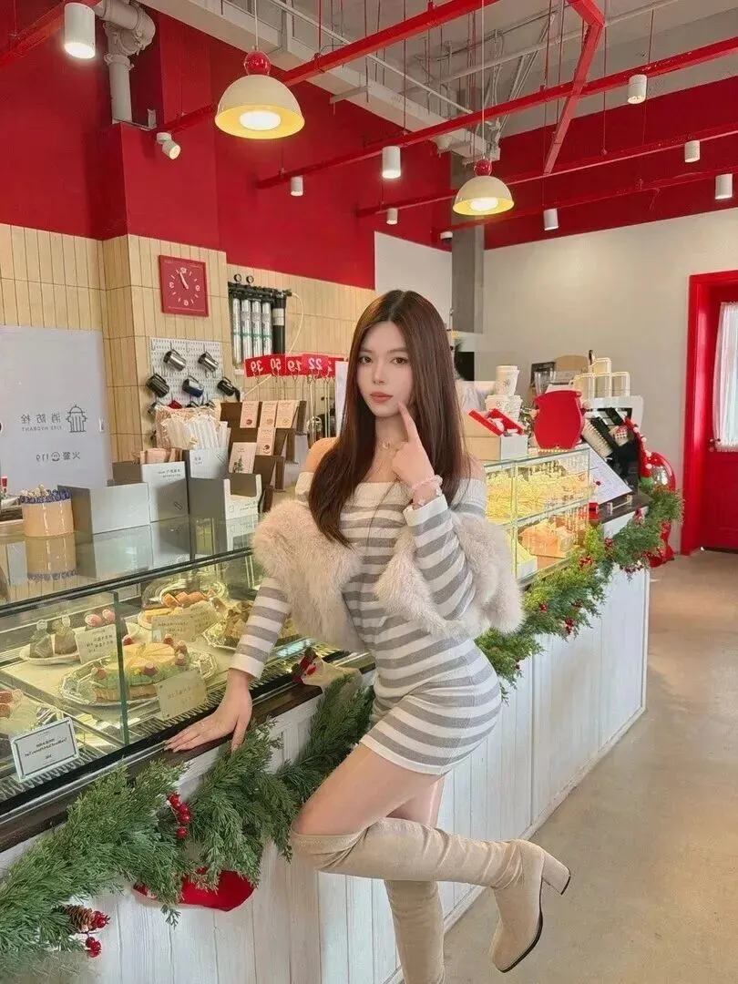 你可.以站在.圣诞.树侧面,让.裙摆和.披肩自然垂.下。或.者拿着.热红.酒杯子低头.微笑,.露出.脖子线条。.有橱窗的地.方更好,玻.璃反光能.让照片更.有层次。
