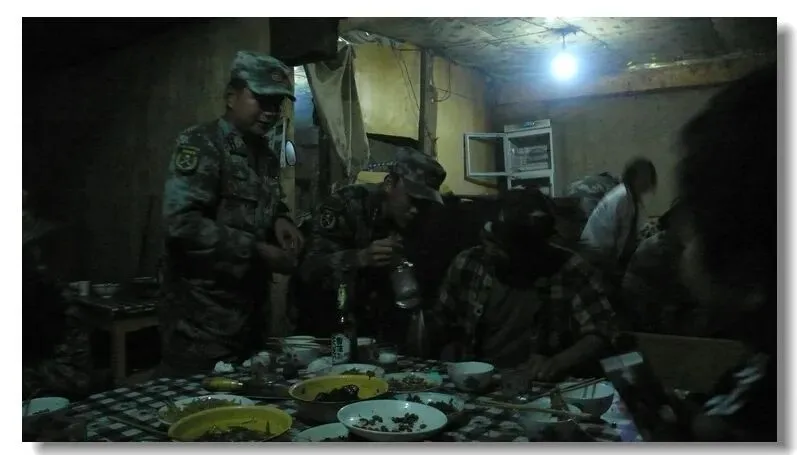 这一群人在这样的夜晚因为塌方、因为发烧相聚在一起毫无拘束,白酒、啤酒、自酿藏酒海阔天空,笑声一片...