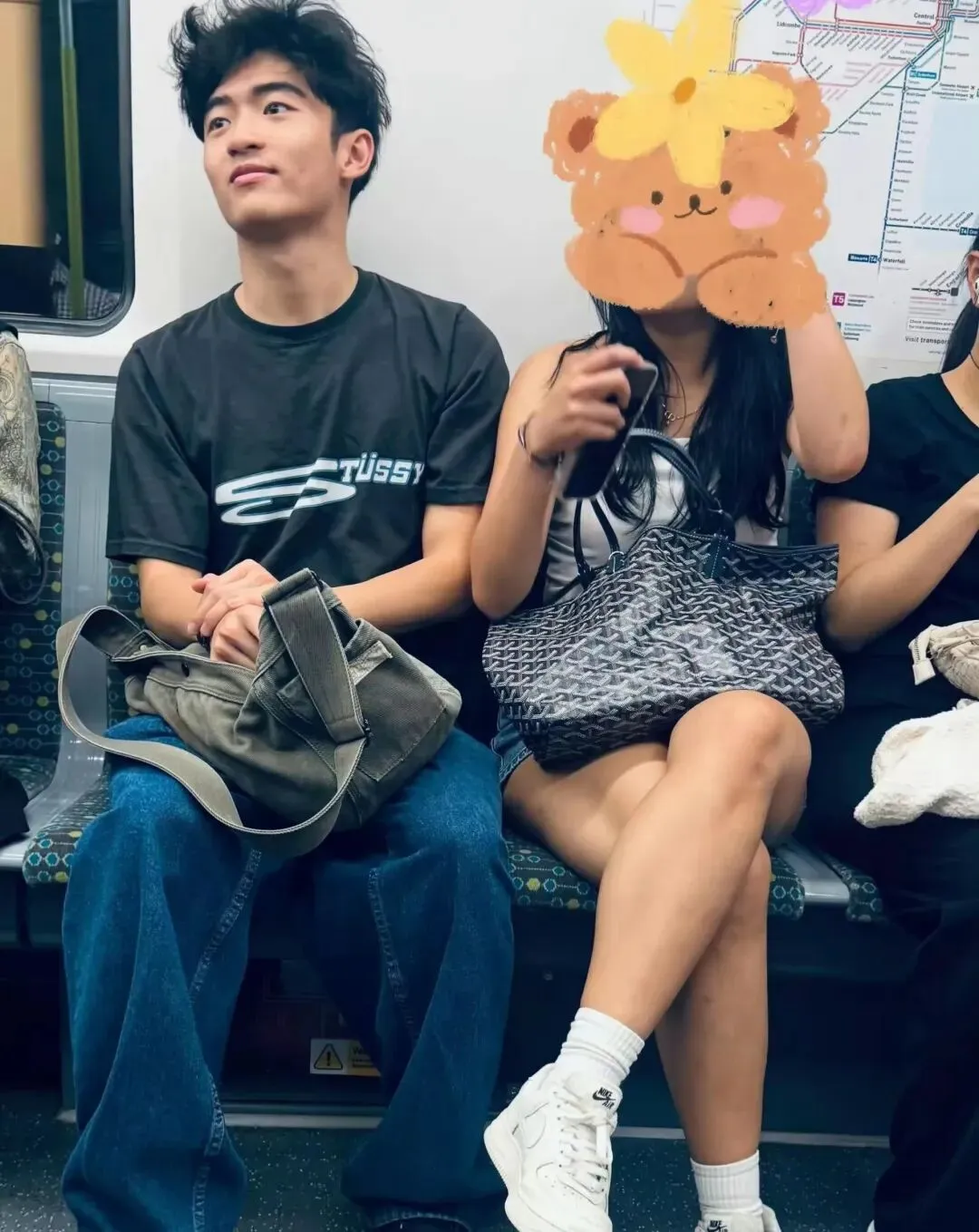 有网友拍到Lucas与一位年轻长发女生一同乘坐地铁出行。